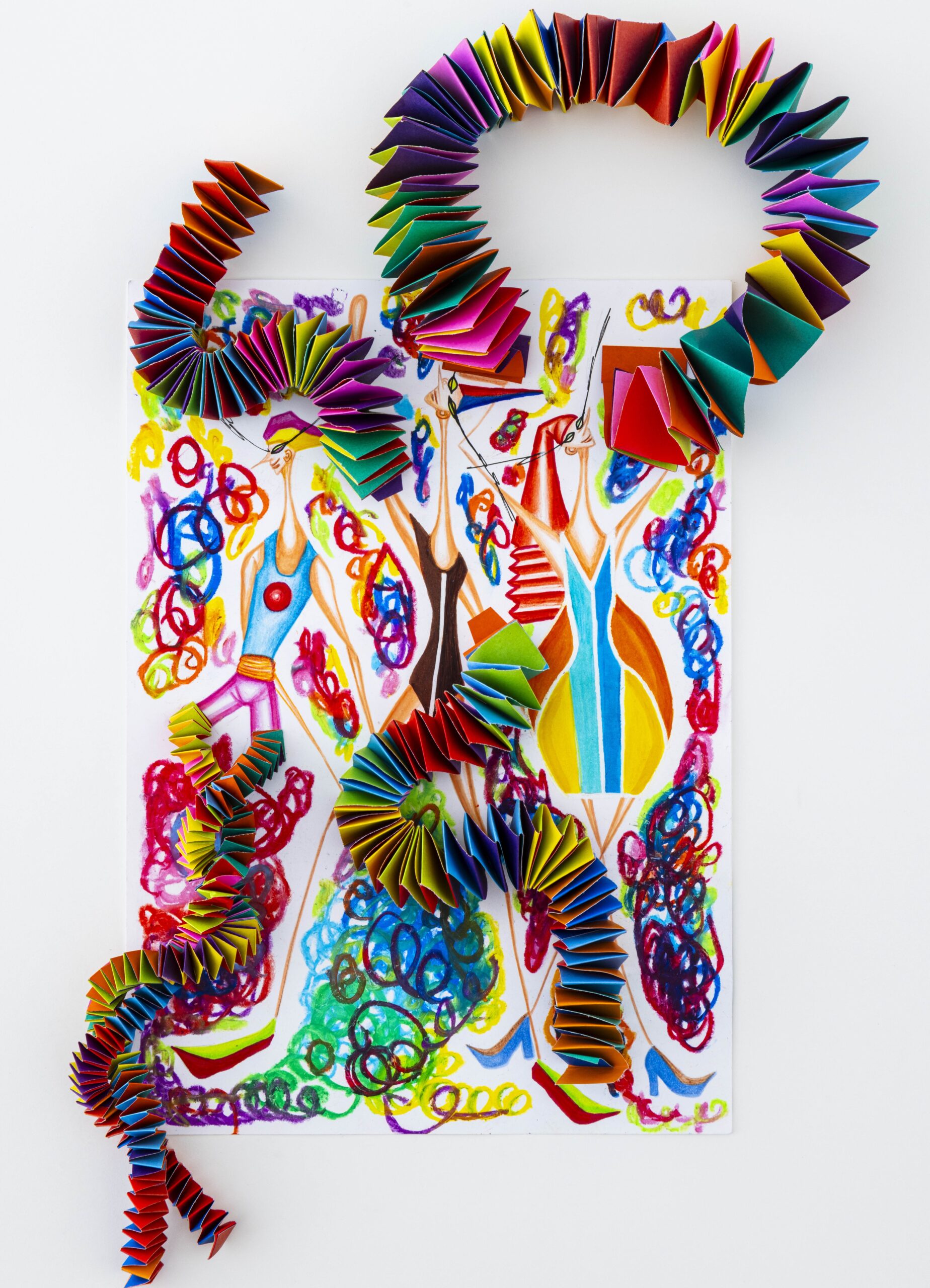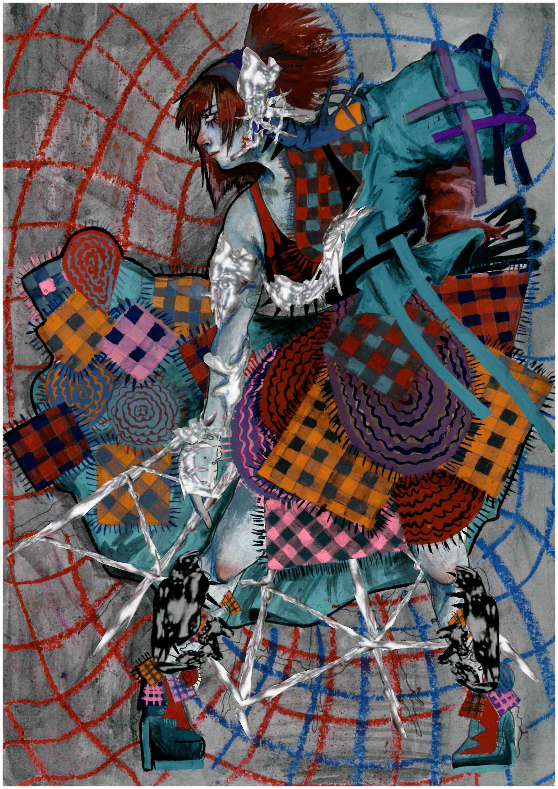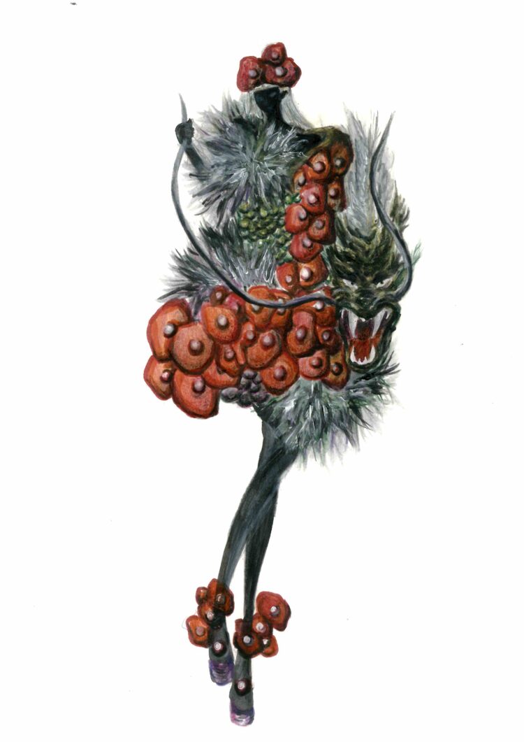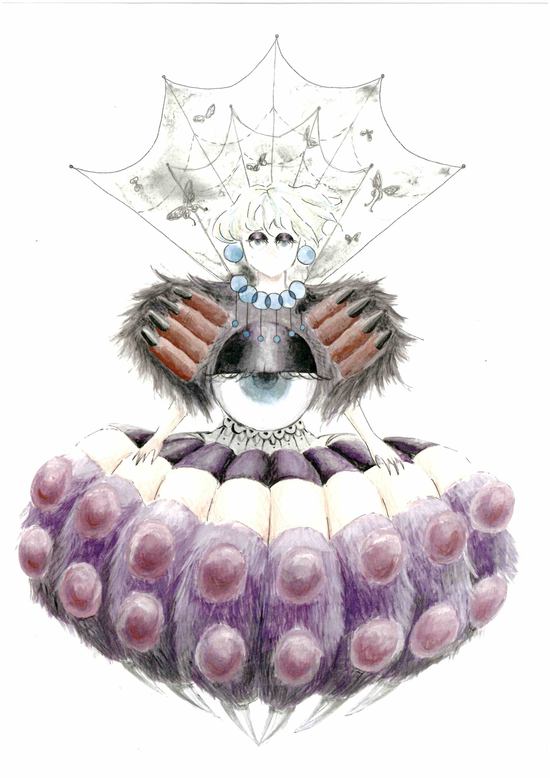 小篠ゆま先生 選評「線と点、タッチだけで表現されたさまざまなモチーフが破綻することなく、また身体性から離れることなくアシンメトリーの美しさが表現できています。丁寧にちゃんと作品に取り組んでいることが見られ、ものを作るときの考え方の起点をわかっているなと。これをもって将来へ進んでいって欲しいという期待を込めて選出しました」