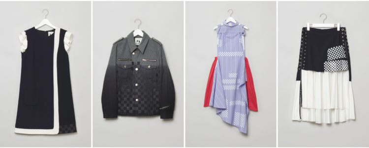 「No cut(ノーカット)」では、ハサミを使わずに、「シルクスクリーン」「顔料プリント」「染め」を施すことで、回収された衣服の傷や汚れを隠し、新しい表情を持つ衣服に生まれ変わらせます。市松模様には「永遠」「無限の繁栄」の意味があり、生まれ変わった服も、長く人々に愛されるものであって欲しいという思いが込められています。