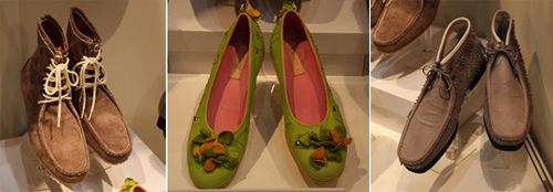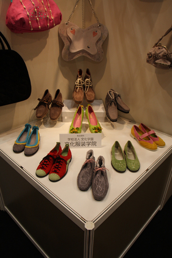 文化服装学院のファッションテキスタル科2年、シューズデザイン科2年、ファッショングッズ基礎科1年の学生がそれぞれコラボレーションで作品を展示しました。