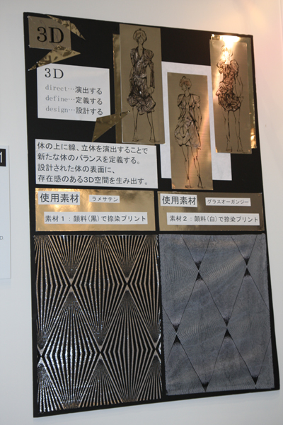 展示作品は一次審査を通過した60点で文化服装学院からはファッションテキスタイル科の学生2名が選出されました。