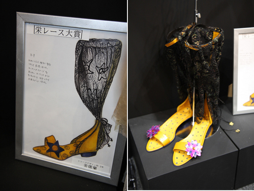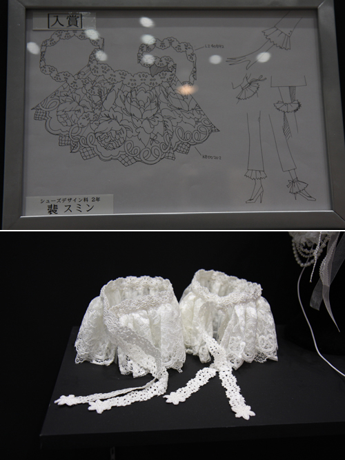 栄レース大賞1名 姜儒蘭(シューズデザイン科2年)/栄レース賞1名 高田舞(ファッションテキスタイル科1年)/入選3名 板野景子(ファッショングッズ基礎科)/裴スミン(シューズデザイン科2年)/近藤扶美(ファッションテキスタイル科2年)