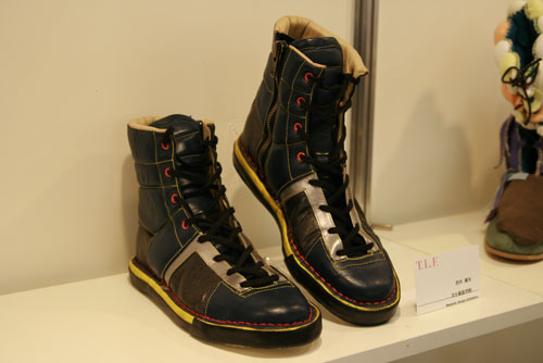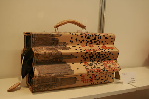 また、展示コーナーではTREND LABORATORYの学生創作展にファッション工芸専門課程の学生作品(バッグ・シューズなど)が展示されました。服飾関連の学校が多数参加するなか、文化服装学院の作品はアート的なものから、実用的・機能的なデザインの作品まで、もっとも多くの作品が出展され、個性豊かな学生作品に業界関係者の方々の注目を集めていました。