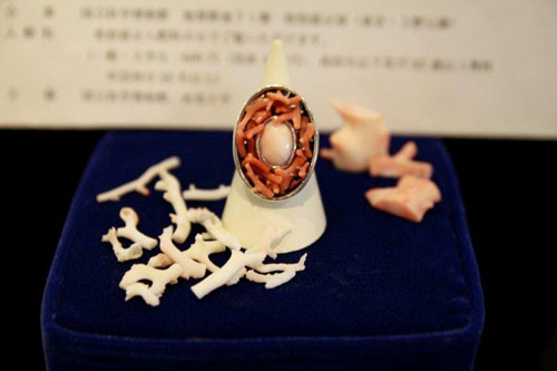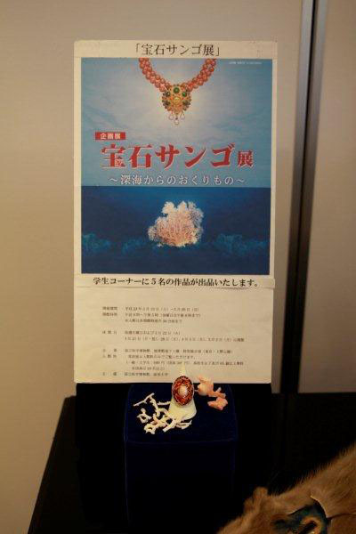この展示の中で帽子・ジュエリーデザイン科2・3年生はご提供頂いたサンゴを元に作品を制作し、完成作品が館内で展示されています。