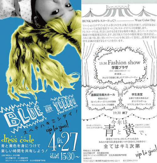 文化服装学院をはじめ、文化学園大学などファッションデザインを学ぶ多くの学生が集う文化学園では昨年よりドレスコードイベントを実施!今年は4月27日(金)にテーマカラー青と黄色で開催。学生はもちろん学園全体がテーマカラーで彩られました!