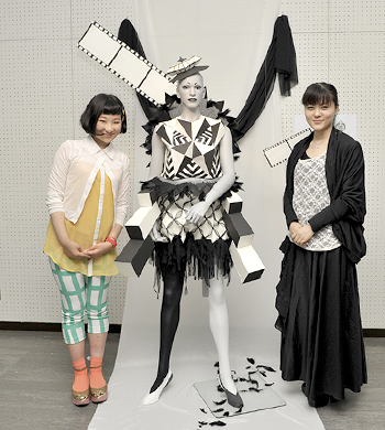 ファイナリスト12名の高校生が、服装科2年生とペアになり5日間でデザイン画を実物に制作。個性的な作品の数々に仕上がり、来場者たちの注目を集めました。