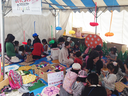 NPO法人こども手づくりプロジェクトからの呼びかけでニットデザイン科の有志学生10名が9月27日(土)、28日(日)・光が丘公園にて開催されたロハスフェスタ内のワークショップイベントに協力しました。