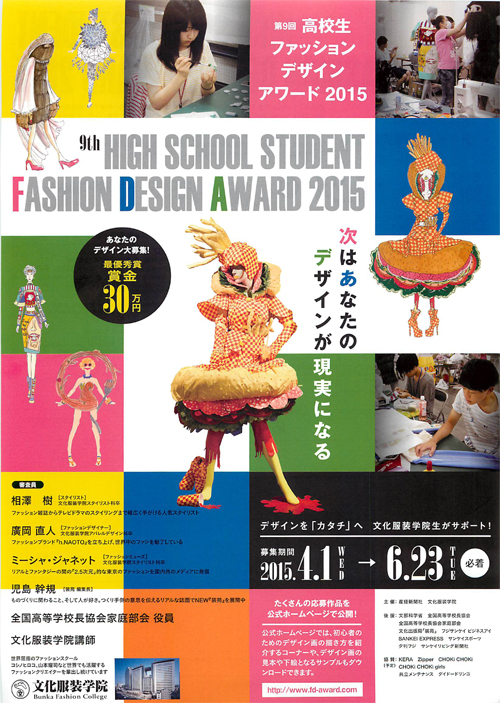 本コンテストは、高校生のファッションへの関心を、自己成長や可能性発掘へとつなげ、キャリア形成の一端をサポートしようと、産経新聞社及び文化服装学院が主催し、今年が9回目の開催となります。