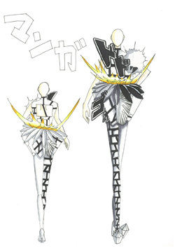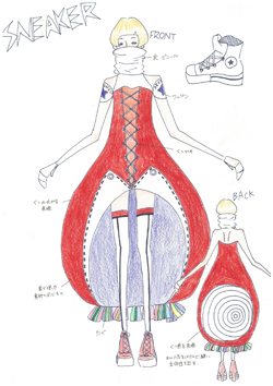 日本全国の高校生から応募がありました2,502点のデザイン画の中から、7月の第一次審査において12名を選出しました。その作品イメージを、文化服装学院服装科2年生の学生がサポートして実際の作品に仕上げました。