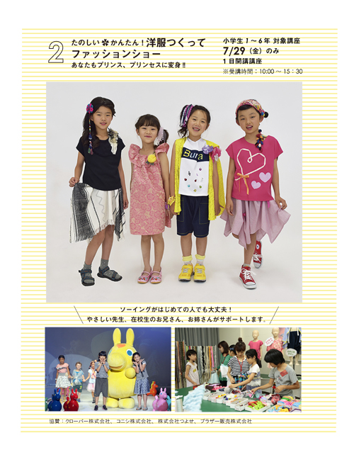 文化服装学院では、今夏も小学生を対象としたファッション講座”プチ・セミナー”を開催いたします。ファッション教育の第一線を担い続ける本校の教員が丁寧に指導し、またファッションを学ぶ現役の学生が製作をサポートいたします。夏休みの自由研究として、楽しく自由に、モノ創りの素晴らしさをぜひご体験ください。