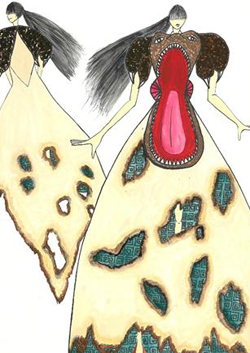日本全国の高校生から応募がありました2,413点のデザイン画の中から、7月の第一次審査において10名を選出しました。その作品イメージを、文化服装学院服装科2年生の学生がサポートして実際の作品に仕上げました。