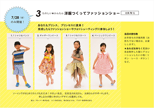 ファッション教育の第一線を担い、世界でも高い評価を受ける文化服装学院で、小学生対象講座”ファションプチセミナー”を開催します。本学院の教員が丁寧に指導し、現役の学生たちが制作をサポート!夏休みの自由研究として、ものづくりの素晴らしさをぜひご体験ください。