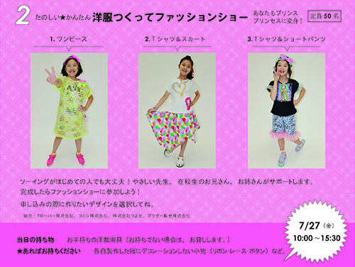 小学生対象講座 ファッションプチセミナー開催のお知らせ