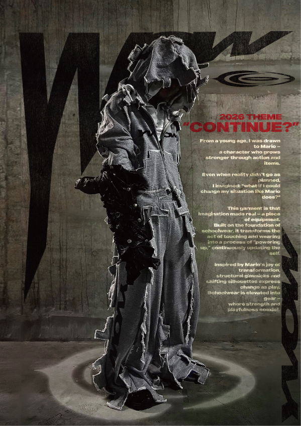 私のブランドは、外面ばかりが評価される時代において、見えない内面こそが人を形づくるという思想から始まる。SNSが感情までも装飾し、均質化された見せるための美が支配する現代に、私は静かに抗いたい。美しさとは本来、整えられた表層ではなく、弱さや矛盾、痛み、意志の揺らぎといった「内に燃えるもの」から生まれると信じている。だからこそ衣服は飾りではなく、内面を外界に翻訳する媒体であるべきだ。外面と内面の境界を曖昧にし、見せないものに価値を置くことで、他者の視線ではなく、自分の核へと回帰させる。私は表層文化に対し、静かで熱い反証を示したい。