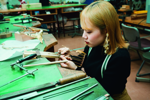 テキスタイルやファッショングッズを学ぶ工芸専門課程の特徴や卒業後の就職に関して、説明を行います。