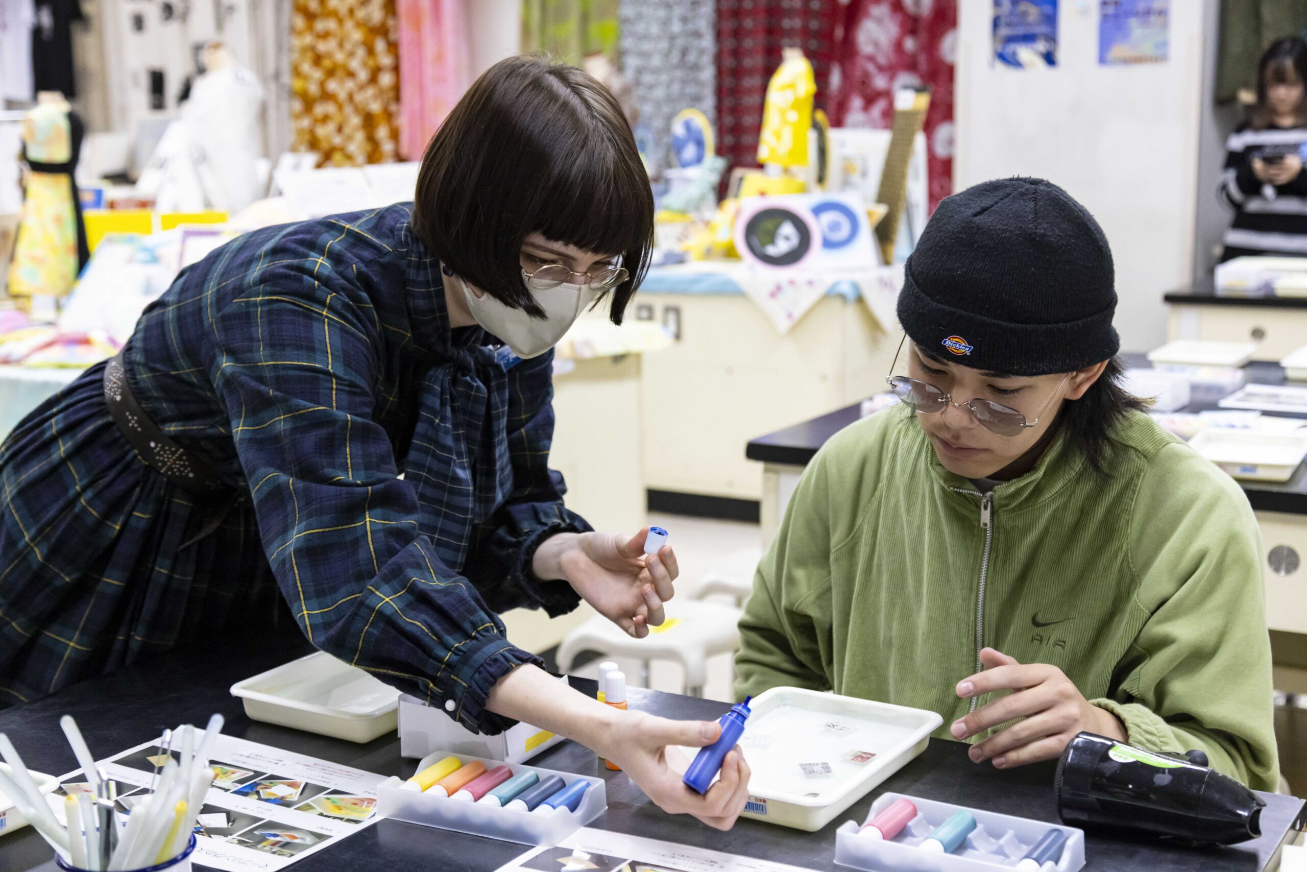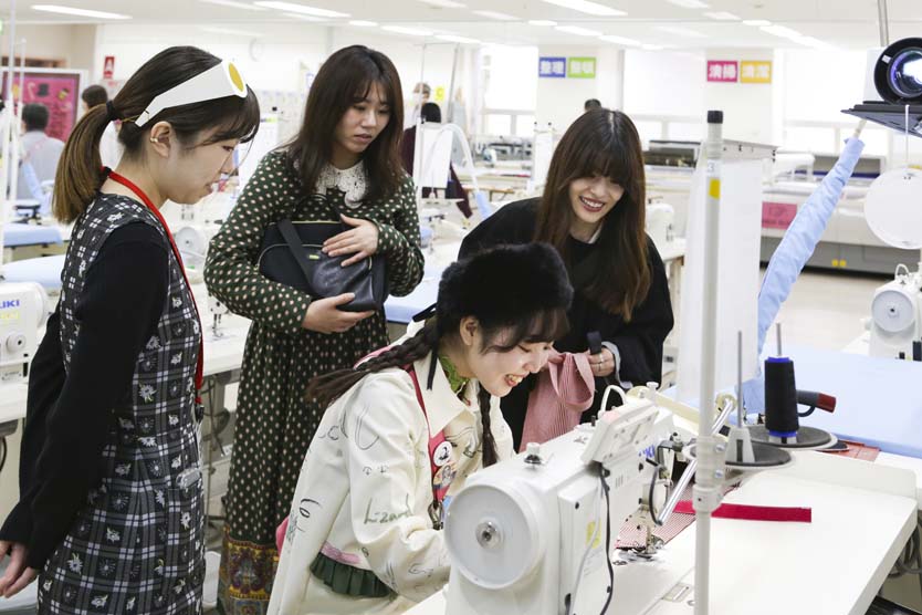 ファッションを実践的に学ぶための専門設備の充実が世界的にも評価されている文化服装学院。各実習室では作品展示のほか、専門設備や最新機器を使用したワークショップも実施します!