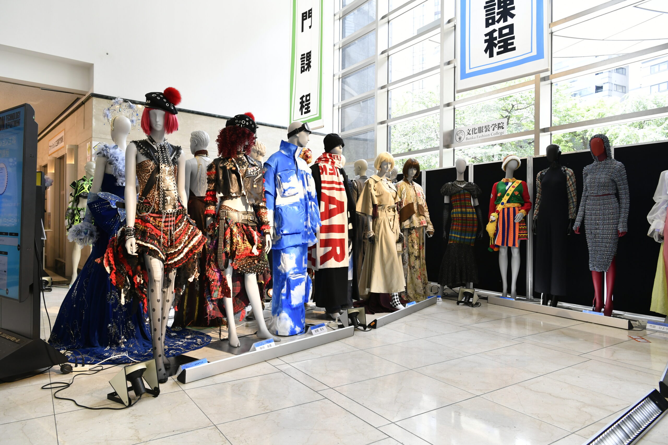 ファッションを「つくる」「伝える」「売る」が学べる文化服装学院のならではの作品展示。渾身の学生作品の数々が近くでご覧いただけます。