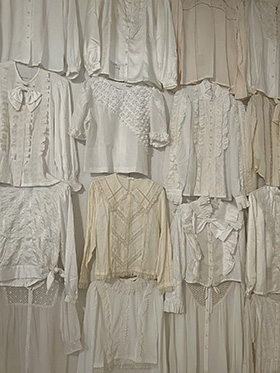 リソースセンター所蔵の約2000枚のブラウスを展示。タイトル通り試着できる展示となっております。