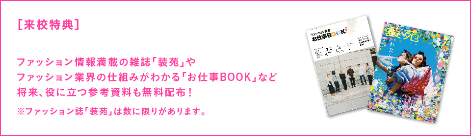 BUNKAの学生の“活用度No.1”! 国内外のファッション誌から、トレンド予測情報誌、服飾・美術・工芸などの専門書が揃う国内有数の『図書館』や、貴重な衣裳が保管されているファッションリソースセンター、服飾博物館など、BUNKAが誇る施設を1日限定で大公開します!
