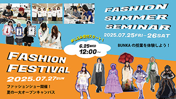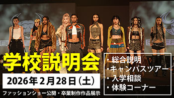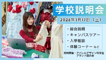 文化服装学院では、定期的に学校説明会などのオープンキャンパスのほか、授業の様子などを見学いただける平日の学校見学なども随時開催しています。