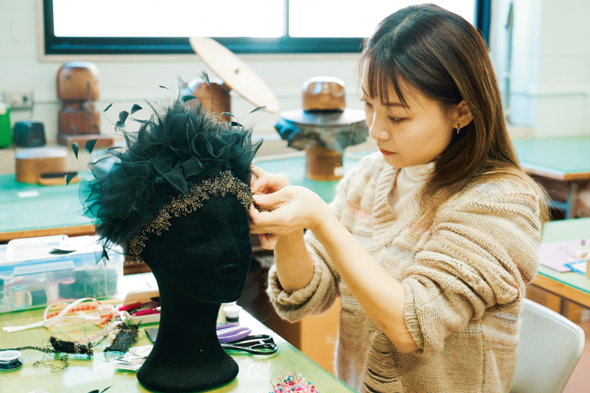 ファッション工芸専門課程の卒業年次の学生たちによる個性豊かな帽子、ジュエリー、バッグ、シューズの卒業制作作品を展示。