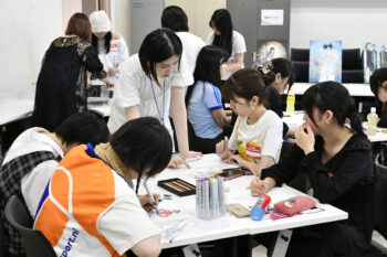 スタイリスト、ショップスタイリスト、バイヤー、プレス、モデルなどファッションの「魅力を伝える」「売る」仕事を目指すファッション流通専門課程。各コースの特徴が良く分かるパネル展示のほか、アパレルの店舗のような教室の見学、「パーソナルカラー診断」や「スマイルスキャン」の体験ができるコーナーです。