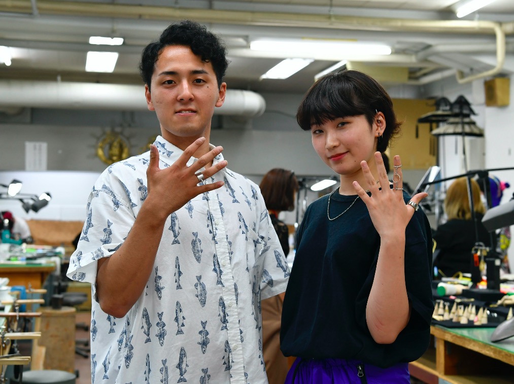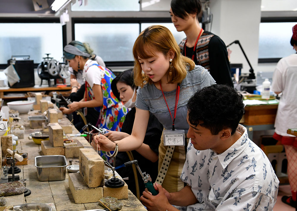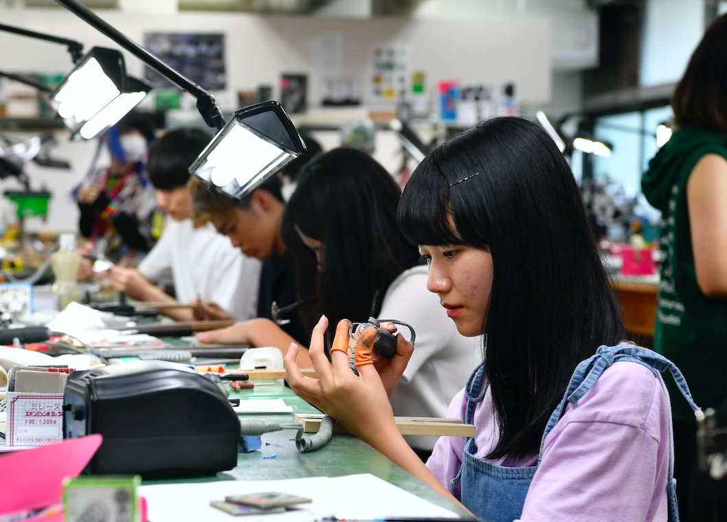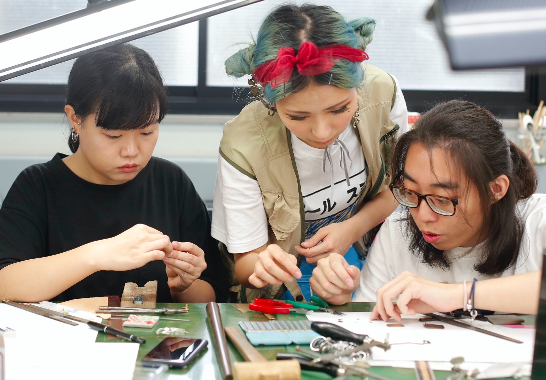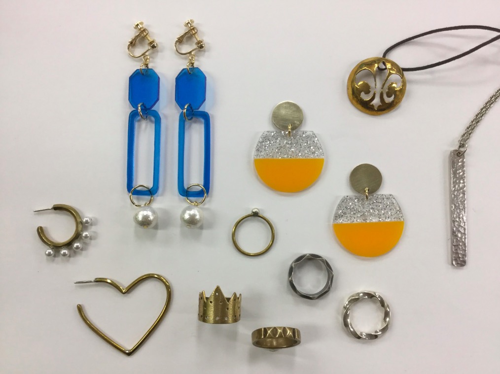 シルバー、真鍮、アクリルなどの素材で自分だけのオリジナルアクセサリーを作ろう!ジュエリーを勉強している在校生が完全サポートし、専門工具の使い方も丁寧に教えます。