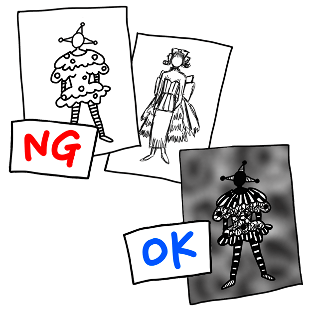 無彩色は規定外。ただし、作品説明により黒や白に意味があると判断できればOKです。