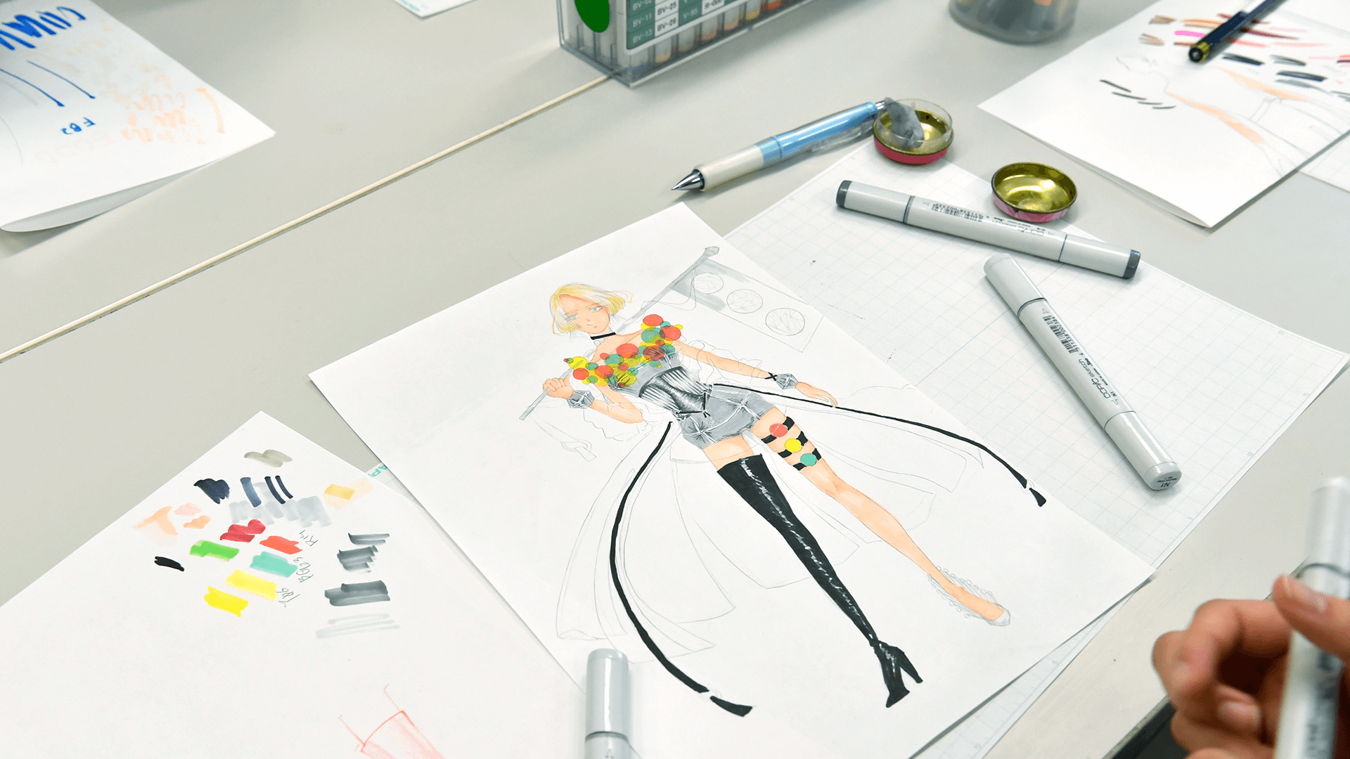 ボディバランスをとるのが難しいという方は、参考ボディ(2ポーズ)をご利用ください。デザイン画の下地となる参考ボディを写したら、服をデザインして、彩色を。