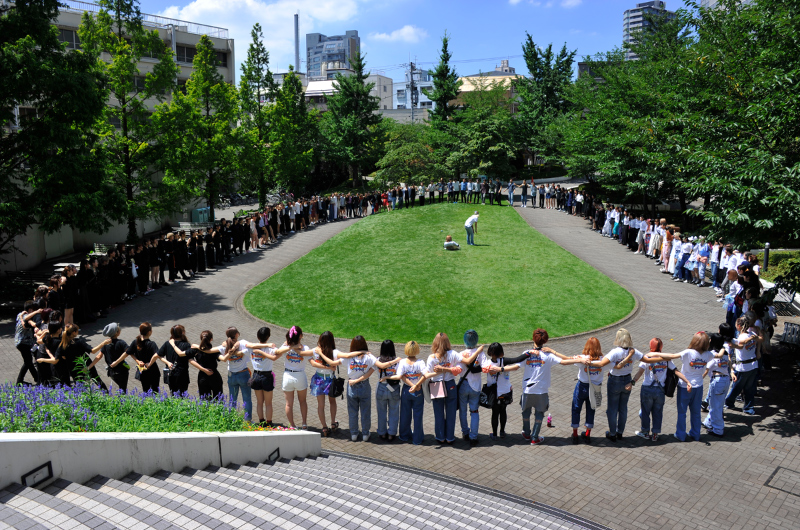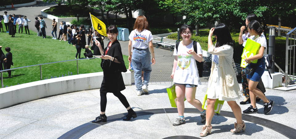当日、校舎入口の総合案内にてイベントパンフレット、ファッションショー整理券を配布します。