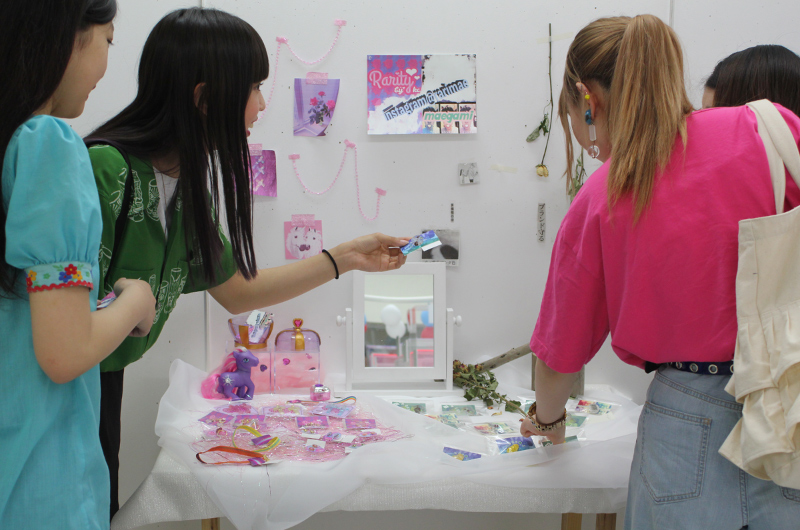 Studio oeuf(スチューヂュオ・ウフ)とは、企画などを学生が行い、会場提供その他運営についてリソースセンターがサポートしてゆく試みの場です。展示作品は全て学生のオリジナルで、ファッション、アクセサリー、雑貨と様々です。即売・受注販売も行います。学生の自由な感性で作られた作品をぜひご覧下さい。