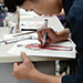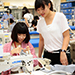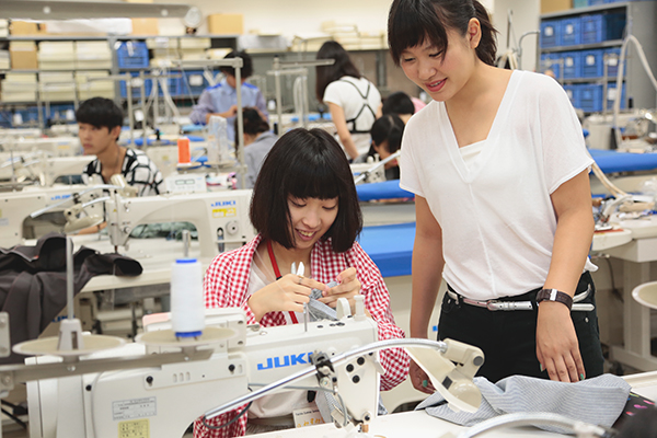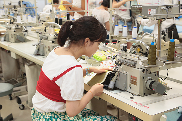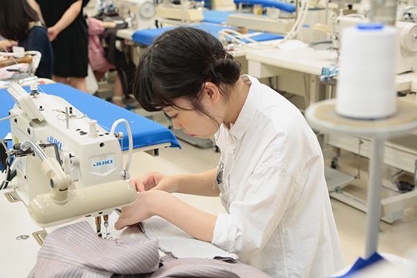 実際に工場で使用されている工業用ミシンを使って、シャツを縫い上げます。 シャツは、M・Lサイズ(メンズも対応)から選ぶことが出来ます。