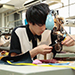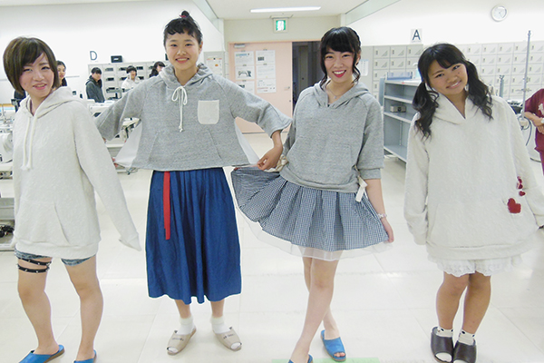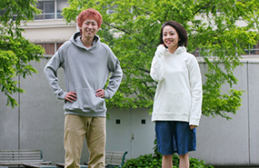 実際に工場で使用されている工業用ミシンを使って、パーカーを縫い上げます。 余った布地でスカートやパンツづくりにも挑戦できます。 パーカーは、M・Lサイズ(メンズも対応)から選ぶことが出来ます。