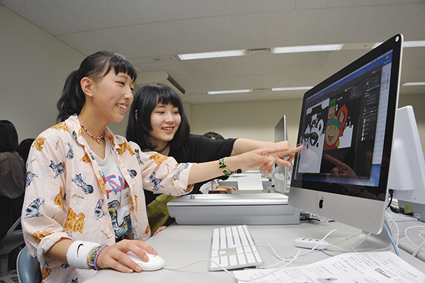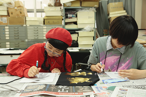 パソコンを使ってデザインした柄をスクリーンプリントして、「キラキラ☆Tシャツ」や「カラフル♪タイツ」など、おしゃれな柄アイテムをつくってみよう。