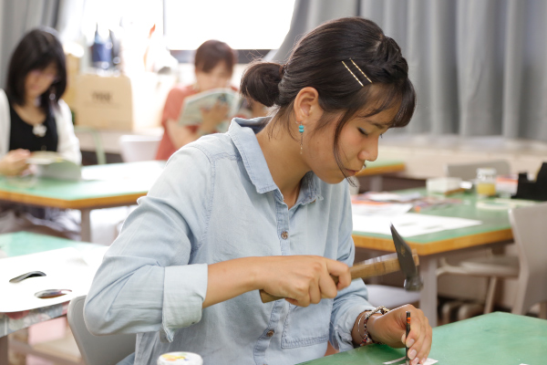 ガスバーナーなどの専門の道具を使って、シルバーリングやネックレス、バングルを制作しよう。ほかの素材と組み合わせて自分だけのオリジナルアクセサリーがつくれます。ジュエリーを専門に勉強している在校生がサポート!初心者でも大丈夫!!