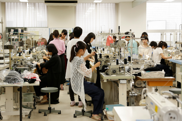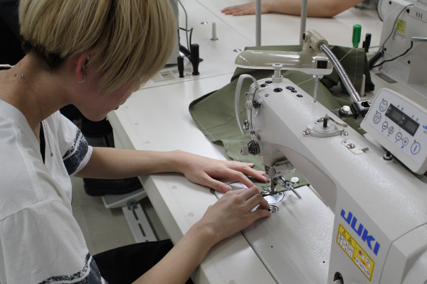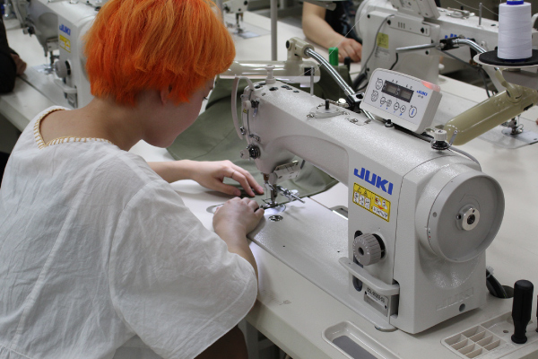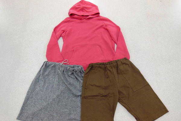 洋服を生産する工場と同じ、専門的なミシンを使用してパーカーを縫製します。使用するミシンは全て特殊なものばかり。余った生地で簡単なスカートやパンツづくりにも挑戦できます。生地とサイズを事前に選んでもらうので、当日は裁断済みの材料を配布し、縫製からスタート。サイズはM・L(メンズにも対応)から選ぶことができます。