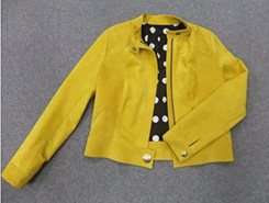 インナーは黒のワンピースで色を抑えていますが、アウターのジャケットに黄色を持ってくることでコーディネートにアクセントを付けました。ワンピースには衿元と裾にビーズ刺繍があり、新春の装いに華やかさをプラスしています。ちょっとドレスアップした綺麗なお母さんをイメージしてみました。