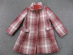 アウターのコートは、丸衿でアウトポケットの付いた可愛らしいウールのコートです。インナーにはコーデュロイのワンピースを合わせました。ざっくりと織られた赤白の大きなチェック柄のコートは、可愛らしさの中にも色や柄で子供っぽくなり過ぎないように心がけた冬のお姉さんコーディネートです。