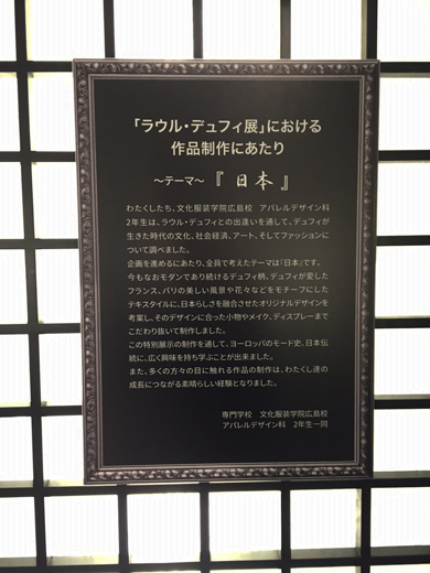 さて、文化服装学院広島校は、ラウル・デュフィのテキスタイルデザインを用いた、5点の作品とデザイン画を制作いたしました。