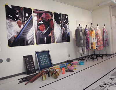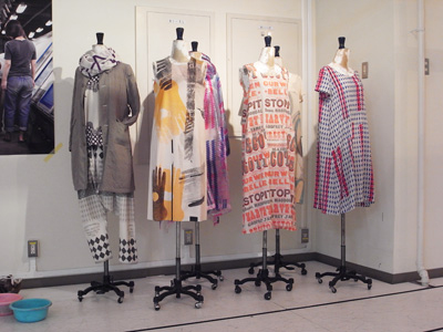 東京コレクション参加デザイナーなどのプリントを手がける奥田正美さんの奥田染工場をメインに、デビュー当時から親交の深いmintdesigns(ミントデザインズ)がプロディースしたコラボレーション展示になります。
