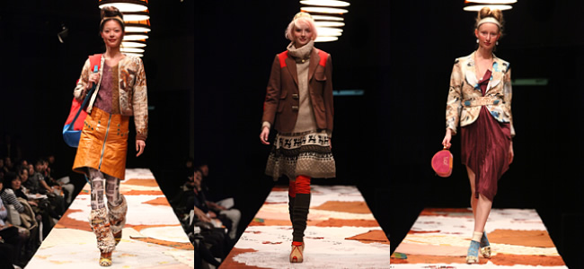 2009-‘10秋冬“ファクトタム”コレクションより。サイトのトップ写真も同ブランドのもの。会場には、幻想的な森が演出された。