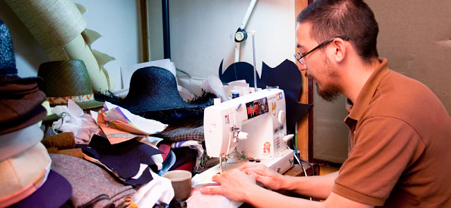 文化在学中から帽子作りを始めてそのまま現在に至っているという横山さん。「学生時代から少しずつ作り始めて、そのまま卒業して帽子作りをコツコツ続けています。将来はどうしようかなぁと思っていたら卒業していた感じです(笑)。何も考えてなかったと思います」。もともと何かを作る作業、物作りが好きで、そういった中で自分が続けていけるのは何かを考えたときに残ったのが、帽子だったのだとか。「文化に入る前に文化学院という美術系の学校に通っていました。油絵を描いたり鉄を削ったり、木を削ったり。そういうことが好きだったんですよね。そしていろいろと消去法をしていって残ったのが、帽子だった。だから続けているのだと思います」