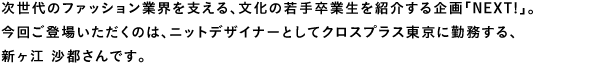 次世代のファッション業界を支える、文化の若手卒業生を紹介する企画「NEXT!」。