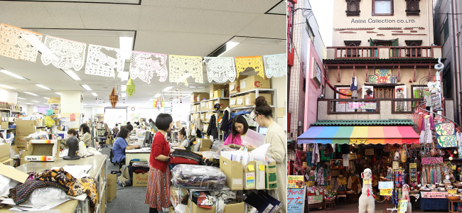 ロンドンでフリーで活動していくこともおもしろいと感じたが、企業で働いてみようと思い帰国。そして現在勤めているアミナコレクションに入社。この会社を選んだ決め手は、「選考基準が日常会話の英語が話せることだったので、語学力を活かせると思ったんです」。海外の取引先と繋がっているということも、働きたいと思った理由だという。今ではシーズンごとにインドやタイ、インドネシアなどの現地へ足を運び、デザインについてのやりとりをしている。西村さんは横浜出身なので、小さい頃からチャイハネにはよく来ていたそう。「それにもともとアフリカンなテイストが好きだったのもあったし、刺繍も好きなので、この会社でやってみようと思いました」