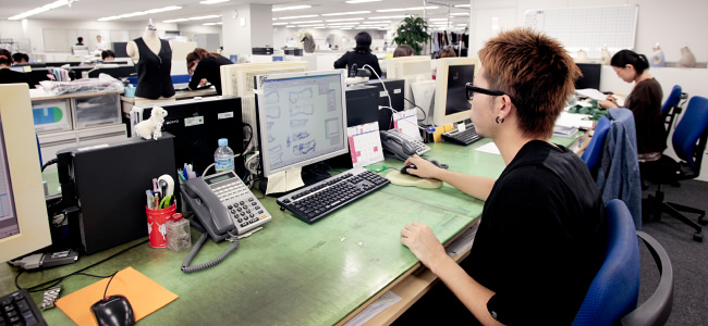 オフィスから飲食店、パーラー、アミューズメントパークまで様々な職業のユニフォームウェアを展開しているイスト。そこでグレーダーとして勤務している花里さんは、大学に通いながら二部服装科に通っていた。そこで3年間学んだ後に技術専攻科へ編入したという経緯だ。「地元が上野ということもあって服に興味はあったんですけど、高校が付属だったのでそのまま大学へ進学したんです。大学では考古学を専攻していたけれど仕事にはできないと思い、大学2年の時に文化の二部に入学しました」。そして技術専攻科を卒業後はオンワード樫山に入社。そこからグレーダーとしての職務をスタートし、オンワードで4年勤めた後に現在のイストへ転職した。