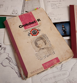 アパレルメーカーに所属することなく、フリーランスとして活動している岡本さん。「フリーで仕事をするのは、自由さえも、すべて背負うことになります。自分でやらないと気がすまないので、つい抱え込んでしまうのですが、文化の同級生や後輩に協力してもらうこともあります。手さぐりで始めた展示会も、人づてにスタッフを紹介してもらって経験を積むことができました」。中でも一番の理解者で、的確なアドバイスをくれるのが、同級生でもある奥さま。「学生時代から僕は夜遊びばかりしていたのですが、妻はまじめなタイプ。お互い、ものを全然違う視点から見ているのですが“おもしろい”と思うものは一緒なんです。デザインを描いたら、ときどき妻にチェックしてもらうのですが、大幅に書き直すこともあります(笑)」
