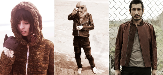 文化服装学院在学中から、大貫憲章氏(音楽評論家、DJ)のイベントの手伝いをしたり、宇川直宏氏(映像作家、グラフィックデザイナー、大学教授)に師事するなど、ファッションと音楽の世界からさまざまなインスピレーションを受けてきた岡本裕治さん。オリジナルブランドの名称“CYDERHOUSE”も音楽から発想を得たもので、「“CYDER”とは、もともとイギリスのパンクス達が飲んでいた安い発泡酒のことで、<カオスU.K.>というバンドのリミックスの曲名でもあります。そんな日常を楽しむためのお供“CYDER”をつくる場所としての“HOUSE”でありたいと考え、ブランド名に決めました。パンクで、民族的で、サイエンス・フィクションな世界観を、洋服で表現できればと考えています」。
