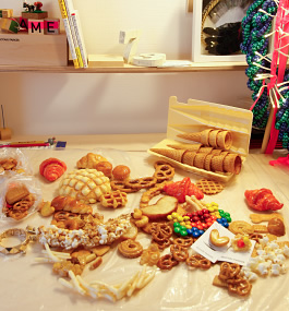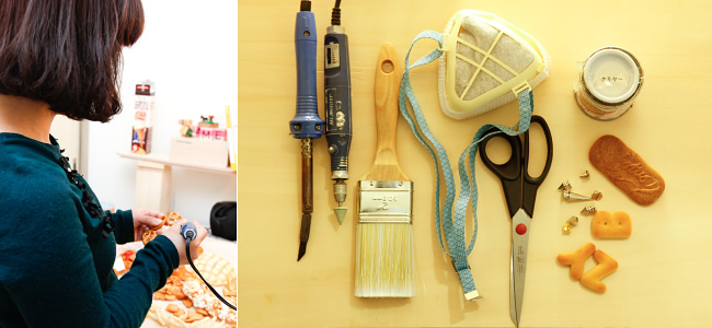 広田さんがアクセサリー作りにはじめて触れたのは、アパレルデザイン科の授業。樹脂を使ったアクセサリーを制作した。そのときお菓子は使わなかったが、あるとき手元にあったクッキーを、樹脂で固めてみようと思い立つ。「以前、仲のいい友達からもらった手作りクッキーをずっと残しておきたい、お守りのように身につけたいと思ったのを思い出したんです」これをきっかけに、しけったり、食べきれなかったりしたお菓子を樹脂で固めてアクセサリーにするのが広田さんの趣味になっていった。「もともとはアパレルデザイン科でしたし、学生のときに作っていたのは洋服で、まさかアクセサリー作りが自分の仕事になるとは思っていませんでした」