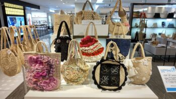 文化服装学院 ニットデザイン科×ラフィアバッグブランド・スルシィコラボレーション企画(2023年度) 銀座「教文館」にて展示販売!