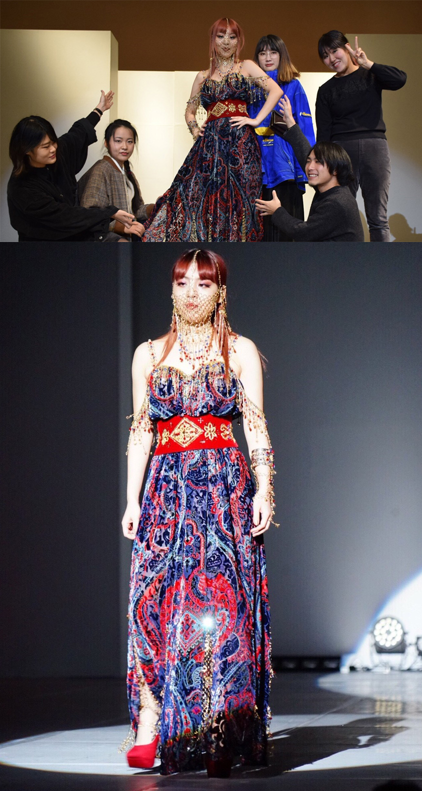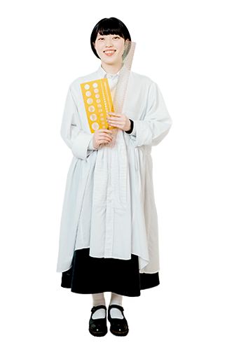 ファッション誌のスナップで文化の学生がたくさん紹介されていたのがきっかけで、文化に興味を持ちました。入学する決め手になったのは、文化祭で見て衝撃を受けたファッションショーです。服飾の授業がある高校に通っていたので、アパレル技術科を目指してファッション工科基礎科に入ろうか悩みましたが、舞台衣装にも興味があったので、進学時に技術専攻かオートクチュール専攻か選べばいいと思い、まずは服装科に入りました。