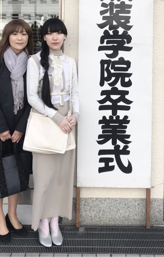 高校3年生の夏まで飴職人を目指そうと製菓の専門学校に進む勉強をしていましたが、夏休み明けに役者志望の友人に連れられて劇団四季の『ウィキッド』の舞台を見て大感激。特に衣装に魅せられて「将来はこの仕事をしたい!」と思い、進路を大きく変えました。夏休み中に担任と家庭科の先生の勧めもあって文化服装学院のサマーセミナーを受講後にあらためて説明会や文化祭にも足を運び、入学を決意しました。